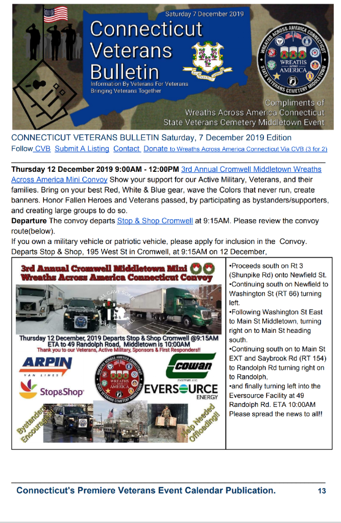 CONNECTICUT VETERANS BULLETIN(CVB), 7 December edition is available for download.
