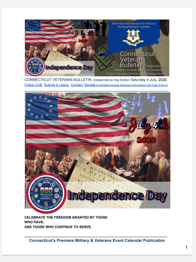 CONNECTICUT VETERANS BULLETIN 4 July, 2020 Independence Day Edition is available for immediate download!!