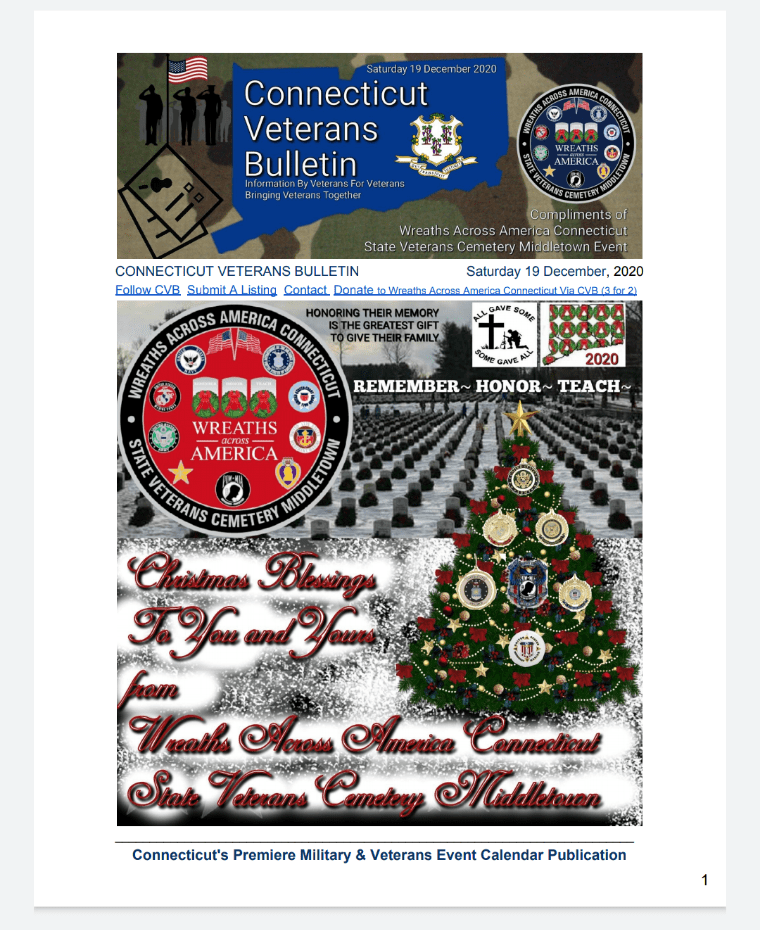 CONNECTICUT VETERANS BULLETIN(CVB) Christmas Edition 19 December, 2020