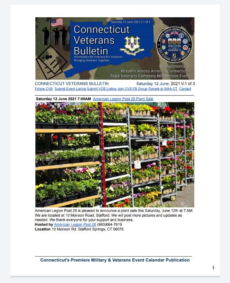 CONNECTICUT VETERANS BULLETIN(CVB) 12 June 2021 Edition Volume 2 of 3