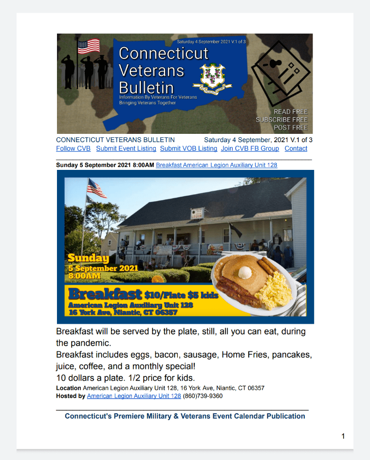 CONNECTICUT VETERANS BULLETIN, 4 September 2021 Edition is available for FREE download!!