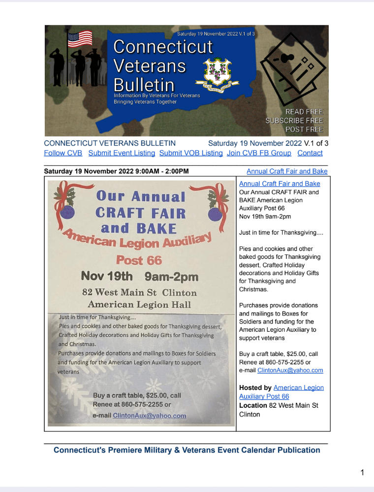 CONNECTICUT VETERANS BULLETIN’s WEEKLY PDF publication, Volumes 1-3, 19 November 2022.
