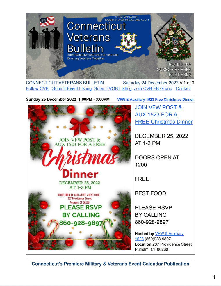 CONNECTICUT VETERANS BULLETIN’s WEEKLY PDF publication, Christmas Edition Saturday, 17 December 2022, Volumes 1-3,