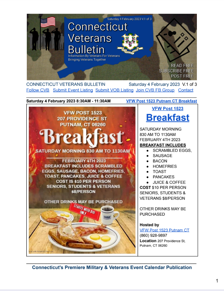 CONNECTICUT VETERANS BULLETIN’s WEEKLY PDF publication, Saturday, 4 February 2023, Volumes 1-3, Download links below👇