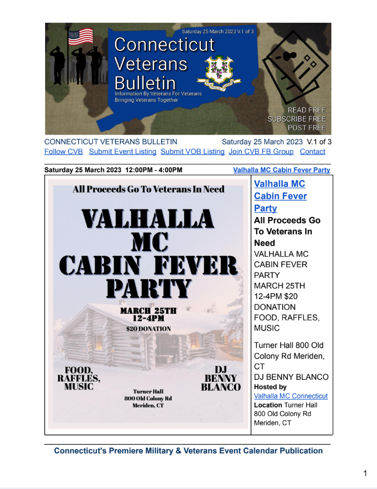 CONNECTICUT VETERANS BULLETIN’s WEEKLY PDF publication,