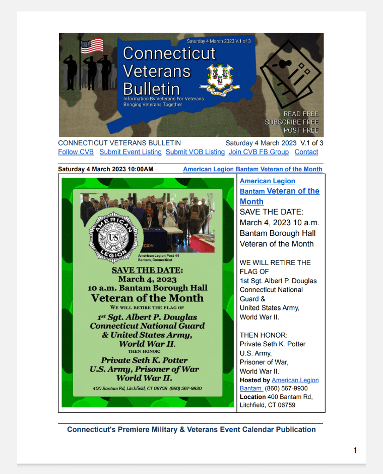 CONNECTICUT VETERANS BULLETIN’s WEEKLY PDF publication, Saturday, 4 March 2023, Volumes 1-3, Download links below 👇