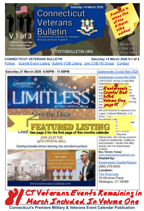With this edition, the Connecticut Veterans Bulletin continues to strengthen veteran connections, support charitable initiatives, and highlight the vibrant and ongoing life of Connecticut’s veteran community.