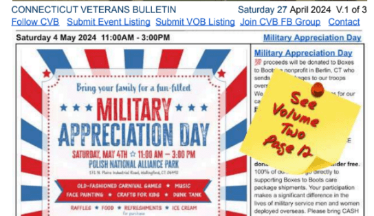 V2 CVB’s Weekly Connecticut Veterans Calendar Publication Saturday 20 April 2024 featured listing page nine